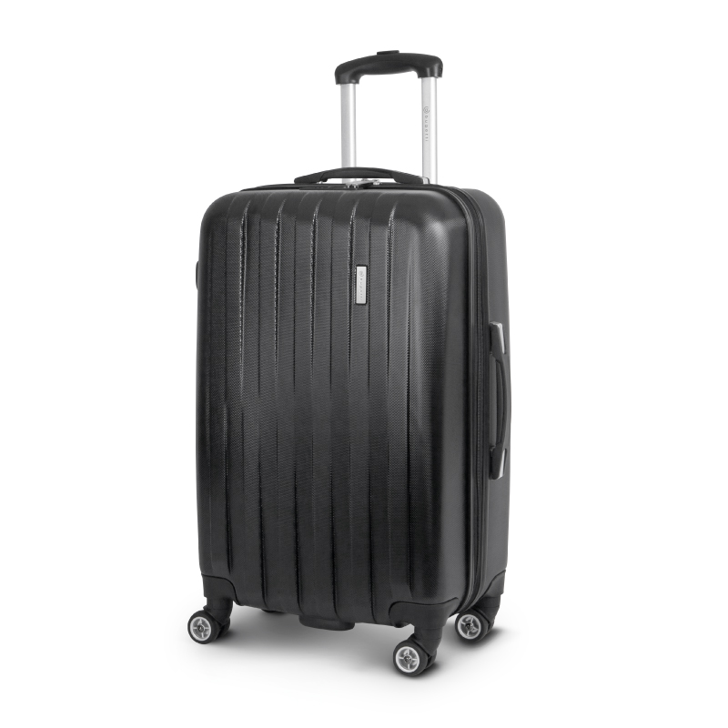 Leicht und robust mit kugelgelagerten 360°-Rollen, kratzfester Strukturoberfläche, elegantem Innenfutter mit Kreuzspanngurten, ausziehbarem Trolleygestänge und angenehmen, ergonomischen Tragegriffen.